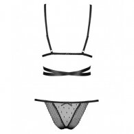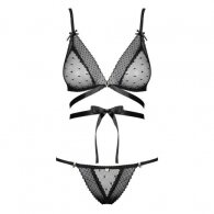Are you looking for a very… hot set? From a charming combination of dots, a phenomenal binding and sexy cut, we have created a wonderful set especially for you ;) Bowessa, which will work both during 'ordinary' evenings for two, as well as those when you celebrate a special occasion together. The good news is, you don't need a special occasion to buy this one! In your new set you will exude feminine sensuality;) It promises to be a lot of pleasure and even more love! Check out the details: set includes black bra and thong adjustable straps – comfortable to wear two cute bows on the straps – a bit of girly charm charming material with dots – slightly see-through satin lacing at the waist metal ornaments on the bra and thong – a sensual detail thong decorated with a gold pendant on the front and cute bow on the back – even more sex appeal materials are gentle on the skin.