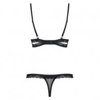 A wisp of nothing! Perfect set to get all the attention. Seductively transparent over the nipples and with aesthetic cut-outs below the breasts and on the string. It also has decorative lace on the waistband.