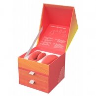 C-shaped couple's vibrator Chorus from We-Vibe that features 10 and more vibration modes. It is flexible and stays in position to adapt to the individual shape of the body. The new AnkorLink™ technology creates a connection to the remote control, which then connects to the couple's vibrator and works as a signal amplifier to make a better connection to the app possible. It is a brand-new technology that works more steadily and reliably than Bluetooth and makes sure that smartphone and sex toy are always connected. The remote control itself also has Squeeze Control to adjust the intensity of the vibrations by squeezing it. Chorus also features special receptors so that in Touch-sense mode it can be controlled by simply laying on the hand. The app lets the users control the toy remotely over large distances and they can also create custom vibration modes. The vibrations can also be synchronised to music. The Chorus comes in a discreet storage box that is also a charging station for the remote control and vibrator. Fun is possible anywhere with Chorus because it is waterproof. Includes a USB cable for the magnetic charger box.