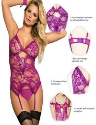 Κορμάκι με ζαρτιέρες και χειροπέδες από δαντέλα