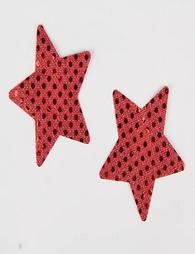 Κόκκινα καλύμματα στήθους σε σχήμα αστεριού. Διακοσμείται με μικρά κυκλάκια που δίνουν μια πιο ιδιαίτερη εικόνα. Στην πίσω πλευρά έχει σιλικόνη για να μπορείτε να το χρησιμοποιείται εύκολα αλλά και για αρκετές χρήσεις. Είναι 100% πολυεστερικό.