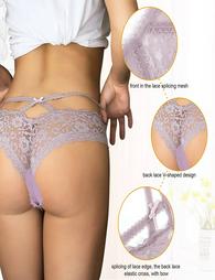 Λιλά δαντελένιο κιλοτάκι με λουλουδένιο μοτίβο και με διακοσμητικό φιογκάκι στο πίσω μέρος. Η ύφανση του έχει 88% Nylon και 12% Spandex. Είναι plus size.