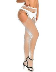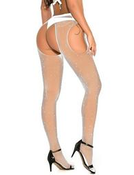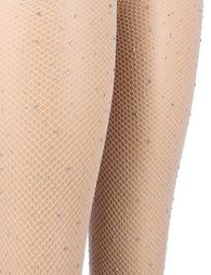 Λευκό διχτυωτό καλτσόν με διακοσμητικά κρυσταλλάκια και με ανοίγματα. Είναι ελαστικό και one size.