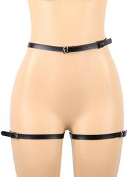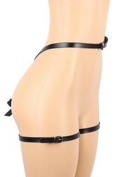 Μαύρη ρυθμιζόμενη ζαρτιέρα στην μέση και στους μοιρούς. Στο πίσω μέρος έχει ένα ασημένιο κρίκο και διακοσμείται με φιογκάκια στην περιοχή των γλουτών. Είναι one size.