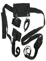 Universal bondage kit! Στήριγμα λαιμού (πλάτος 10 cm) συνδεδεμένο με τους ιμάντες αστραγάλου με δύο ιμάντες (μήκος 155 cm το καθένα). Όλα τα στοιχεία έχουν επένδυση και κουμπώματα Velcro (ρυθμιζόμενα σε μήκος). Μαύρο. Υλικό: πολυπροπυλένιο, μέταλλο.