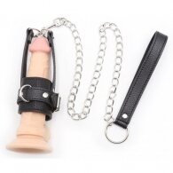 Adjustable and easy to fit on ( see photos) pu leather penis ring with a detouchable metal leash. Truck the slave around.