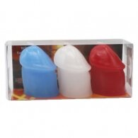 Χαμηλής θερμοκρασίας κέρινα ομοιώματα κεφαλής πέους, σετ με τρείς διαφορετικές χρωματικές επιλογές. Κόκκινο, γαλάζιο και λευκό. Αστείο, kinky και ιδανικό για φετιχιστικά παιχνίδια.