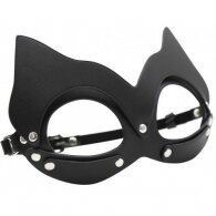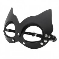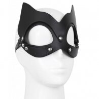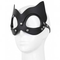 One size and fully adjustable for role fetish bedroom playing cat mask by Naughty Toys. Black leather.