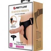 Pretty Love Jerry harness briefs set with dildo - Insertable length 15,5 cm - Diameter:Ø 4,6 cm. Get ready for some wet and wild fun with this harness briefs. This universal strap-on harness is a great choice for beginners and experts alike. Made from soft and stretchy fabric for a form-fitting design that can be worn discreetly under your clothing. It has an extra-wide waistband for your comfort, even during all-day wear. With a realistic look and feel, this lifelike dildo is your ultimate sidekick for unforgettable, pleasure-packed nights. Stick to your universal strap-on harness and wear your new, 7.6-inch cock with pride. Perfect for partnered play, we guarantee you will get into the sexy spirit with this intoxicating cock.