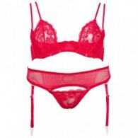 Bra with detachable lace cups and two pairs of straps. One pair is detachable and the other pair is adjustable. With a hook-fastener at the back. The underwired cups are slightly padded.