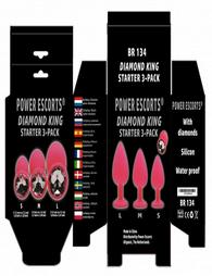 Power Escorts - Diamond King - 3 Pack Starter Butt Plug - Ροζ βύσματα με γαλάζιες πέτρες - S, M & L - Br134