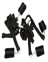 Τότε αυτό το σετ δεσμών κρεβατιού είναι απαραίτητο για εσάς! Τέσσερις ιμάντες με καραμπίνερ σε κάθε άκρο συνδέονται με μπιέλα κάτω από το στρώμα. Προσαρμόστε τις βελούδινες μανσέτες στους καρπούς και τους αστραγάλους του συντρόφου σας με Velcro και γαντζώστε τις στα καραμπίνερ. Αναγκασμένος να παραμείνει ακίνητος, ο σύντροφός σας τώρα ξαπλώνει στο κρεβάτι μπροστά σας με τα χέρια και τα πόδια του ανοιχτά... Τώρα είναι στα χέρια σας να φέρετε το δεσμευμένο άτομο σε μια εκρηκτική κορύφωση!