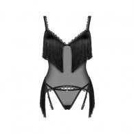 A short rundown on the seductive Sherila corset by Obsessive: irresistible look, maximum self-confidence and temptation! Imagination-triggering details add an extra dose of spiciness – sexy garter belts, ultra-fine tassels covering the breasts and minimalist, lace trimmings. Delectable, translucent fabric fits snugly on your body with exquisite lightness, making you feel completely free to indulge in unforgettable moments…
