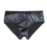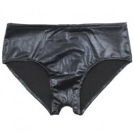 This is an open bottom female briefs that will offer all-day-long-and-everywhere confort for easy sex. It's black and made out out of Enamel Spandex= 50% polyester, 10% Polyurethan and 40% PVC.