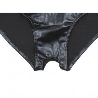 This is an open bottom female briefs that will offer all-day-long-and-everywhere confort for easy sex. It's black and made out out of Enamel Spandex= 50% polyester, 10% Polyurethan and 40% PVC.
