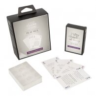 The Play Nice Talk Dirty Inspiration Cards card game from Fifty Shades of Grey is in a beautiful design and it is the perfect inspiration for dirty talk, roleplay and exciting actions! Each of the 52 cards has a quote from the Fifty Shades of Grey trilogy, a seductive sentence and a matching action that should be done. The cards are split into 4 colours – from beginner-friendly to hot quotes and actions. A joker can be used for a very special action – the players can try out their own ideas.