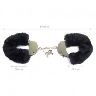 Υψηλής ποιότητας και αντοχής, ατσάλινες ανθεκτικότατες μεταλλικές χειροπέδες επενδυμένες με εύκολα αποσπώμενο μαύρo γουνάκι για ατελείωτα ερωτικά αισθησιακά παιχνίδια περιορισμού. Διαθέτει κλειδαριά με δύο κλειδιά. Διαθέτει επίσης μοχλό γρήγορης και ασφαλής απασφάλισης. 'Ενα μέγεθος, ρυθμιζόμενες, για να προσφέρουν άνετη εφαρμογή και στα δύο φύλα. Το γουνάκι αφαιρείται πολύ εύκολα για πλύσιμο. Το γουνάκι προστατεύτει απο γδαρσίματα και μωλωπες. Ιδανικό αξεσουάρ για αισθησιακά παιχνίδια. Μικρή αλυσιδα μεταξυ των δύο δεσμών. Ιδανική τόσο για άνδρες όσο και για γυναίκες.