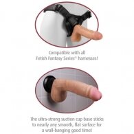 The ultra-strong suction-cup base sticks to nearly any smooth, flat surface for a wall-banging good time! Stick it to the floor, wall, tile or bedpost -- the super-strong suction-cup will stay securely in place during every passionate thrust, and features a quick-release tab for easy removal. The sturdy suction-cup doubles as a harness-compatible base that remains snug in its place even when the action heats up. Wear this vibrating dildo with any Fetish Fantasy Series harness for the most comfortable and realistic strap-on experience!