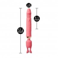12-Speed Pink Color Silicone Thrusting Dildo with Clitoral Stimulator.