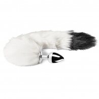 Small Size Metallic Anal Plug with White and Black Color Tail