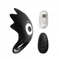 10-Speed Black Color Remote Control Silicone Vibrating Cock Ring