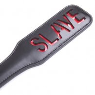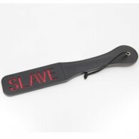 Medium size 32,5 cm x 5,5 cm, for slaves and masters. Black faux leather slapper spanking paddle with red ‘Slave’ cut out design. It can be playful but when you really exersice force and the slave will feel it. With practice, each spank leaves the word 'SLAVE' on your sub's butt. Slightly flexible for maximum impact and contact with the skin. Wrist loop for confident swings and easy storage.