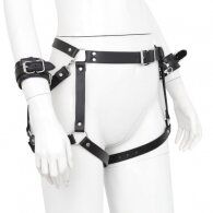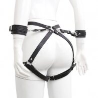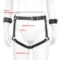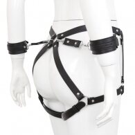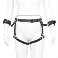 High quality faux leather waist and thigh harness with handcuffs by Naughty Toys.