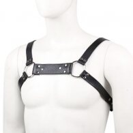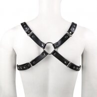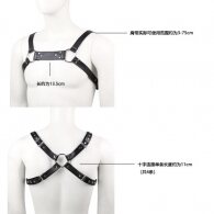 High quality male lingerie body chest harness, made of PU leather. Fully adjustable and covers men with chest size 90 - 110 cm. With O-rings connected, buckle closure for size adjustment