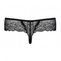 Σέξυ μαύρο δαντελωτό στρινγκάκι το οποίο είναι ημιδιάφανο μπροστά καθώς και από πίσω. Μπροστά υπάρχει μια σειρά από κομψά μικρά διαμαντάκια. Νιώστε όσο σέξυ γίνεται, σε αυτό το εξαιρετικά ποιοτικό στρινγκάκι από την κορυφαία εταιρία ερωτικών εσωρούχων Obsessive.