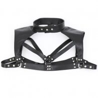 Leather chest harness with neck collar S-M SIZE (GR00030503)