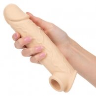 COCK SLEEVE FOR BOYS WHO WANT TO ADD 8 cm EXTRA LENGTH. Super soft and stretchy penis extention sleeve with balls strap for much better hold during in-and-out action. Large size natural cock and balls sleeve, ideal for men with penis length up to 17 cm ( when fully erected). It will give you instantly 8 cm extra length and 1 cm of extra girth. Longer and fatter cock so your partner, will feel you in every way, like never before. Ideal for Anal and vaginal penetration.