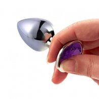 ADVANCED ANAL LOVERS BEST CHOICE METAL BUTT PLUG WITH MYSTERY PURPLE GEM. The largest (Ø 4 cm) metallic jeweled butt plug for men and women. Defenetely, designed for fetish roleplay bedroom games. Now, available in BlueBox, to colourly spice up your backdoor pleasure moments. This magnificent highly polished, quality light weight aluminum butt plug comes with a shiny Deep Purple diamond at the end. Cypriot women and men love this Anal-play toy which has been en vogue for some time now; with butt plugs like this, it really is becoming fashionable.