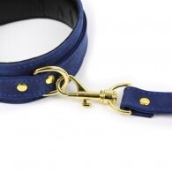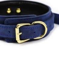 Drug the slave around with style and finesse. High quality bondage play neck collar with matching set leash in premium color combi - Laight blue with yellow gold metal parts. Drug the slave with style