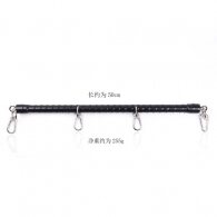 Sturdy metal spreader bar with four mounting points with carabiners. The metal spreader bar is wrapped with PU leather. Use them with your favorite cuffs. Try all the positions and let your imagination do the work. The spreader bar is strong enough to restrain a struggling subject.