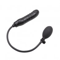 Inflatable dildo made of black latex. Length approx. when not inflated 15 cm, Ø 3,5 - 4 cm. Insertion depth approx. 1 cm. Length tube approx. 39 cm. With hand pump and release valve.