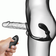 This cock ring with remote control butt plug is a combined cock/ball ring with a securely attached vibro-butt plug. The plug can be easily controlled via the remote control. The combined rings hold the penis and testicles securely and can support the erection effectively because of the blood congestion effect.The inserted butt plug with its special curved design and 12 different thumping and vibration modes that will provide intense backdoor stimulation It is covered in silicone that has a soft touch texture which feels great against the skin. Makes the penis strong and pleasures his backdoor at the same time!