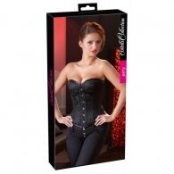 Make your feminine silhouette even more beautiful. Figure hugging black corset from Cottelli Lingerie. Corsage with a beautiful brocade pattern and a hook fastener and eyelets at the front. Decorative lacing at the back (not suitable for waist reduction). The suspender straps are adjustable and removable. Perfect corset for seductive nights or even for daytime together with your favorie jeans.