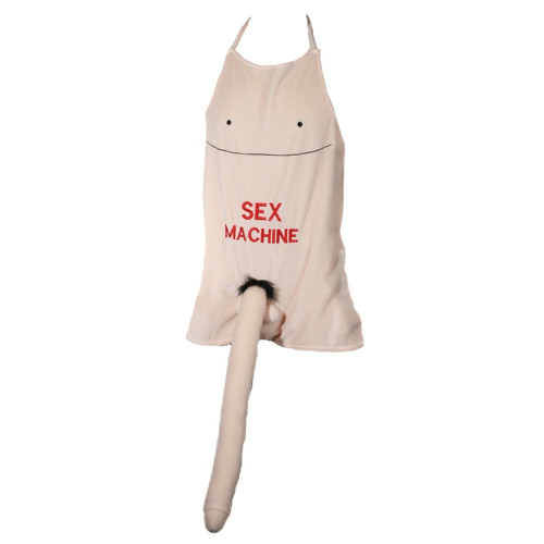 This nude-coloured, halterneck apron can be tied together. The red words 'Sex Machine' are printed on it. The apron also has an outrageously long plush penis (52 cm) with large balls and delicate pubic hair. This apron will turn anyone into a sex machine in the blink of an eye!