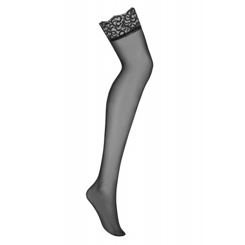 Απίστευτα σέξυ κάλτσες σε κλασσικό μαύρο χρώμα με πλατιά λεπτομέρεια από δαντέλα στις γάμπες. Φορέστε τις με τα αγαπημένα σας ερωτικά εσώρουχα Obsessive και σαγηνέψτε το ταίρι σας. Θα μείνει άφωνος όταν σας δει!