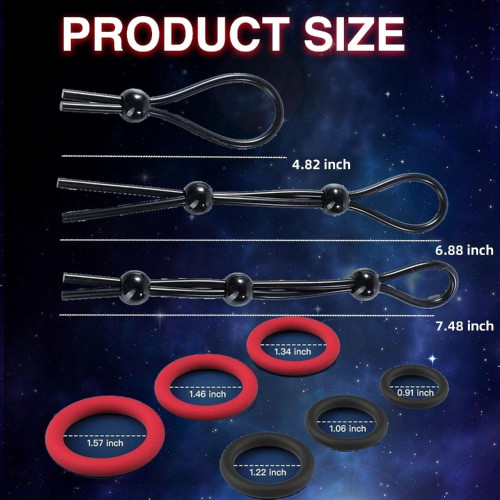 Η TOYBOY παρουσιάζει ένα πλήρες σετ εννέα δαχτυλιδιών για πέος και όρχεις, κατασκευασμένο από καθαρή, εξαιρετικά ελαστική σιλικόνη. Μαλακά και εύκαμπτα, εφαρμόζουν άνετα στη βάση του πέους και γύρω από τους όρχεις, ενισχύοντας τη στύση και την απόλαυση. Μπορείτε να τα συνδυάσετε όπως θέλετε για διαφορετικά εφέ. Βοηθούν στην καθυστέρηση της εκσπερμάτωσης και χαρίζουν μεγαλύτερη διάρκεια, σκληρότητα και ένταση στη στύση