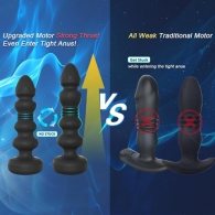 Πρωκτική σφήνα με δόνηση και ώθηση, ιδανική για άνδρες και γυναίκες. Διαθέτει 2 ισχυρούς κινητήρες με 10 λειτουργίες δόνησης και 10 λειτουργίες ώθησης, προσφέροντας έντονη ή απαλή διέγερση, ακόμα και μασάζ προστάτη. Ελέγχεται ασύρματα έως 10 μέτρα μέσω του τηλεχειριστηρίου. Κατασκευασμένη από υγιεινή, υποαλλεργική υγρή σιλικόνη, είναι απαλή, ασφαλής και άνετη στη χρήση. Είναι επαναφορτιζόμενη, με αυτονομία έως 1 ώρα και το συμπαγές μέγεθός της την καθιστά ιδανική για χρήση παντού.
