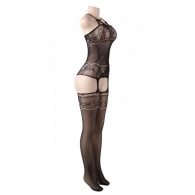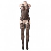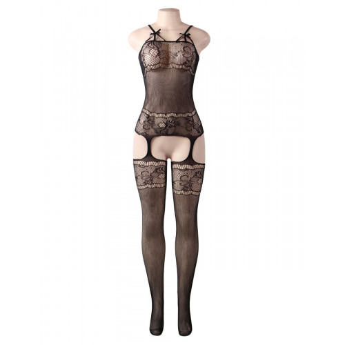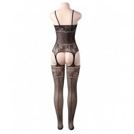 Super sexy one-piece bodystocking leaves little to the imagination, thanks to its suspender straps, open crotch and cut-outs.