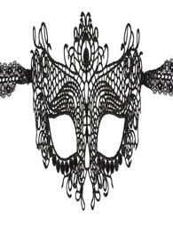Όμορφη μάσκα από λεπτό περίπλοκο κέντημα. Με τρύπες στα μάτια. Η κορδέλα από δαντέλα δένεται στο πίσω μέρος του κεφαλιού.