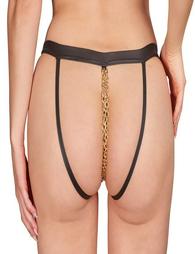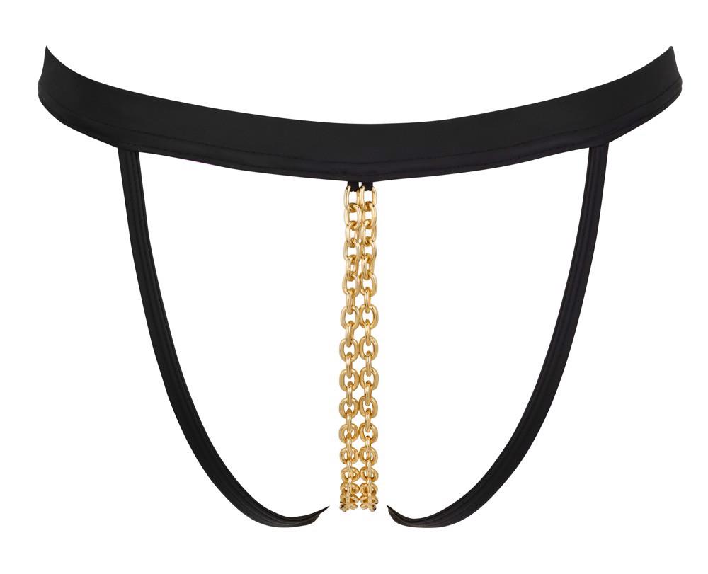 Στριγκάκι Bad Kitty από μαύρες ελαστικές ταινίες με μοντέρνα ματ εμφάνιση και συναρπαστική χρυσή αλυσίδα διπλού καβάλου που μπορεί να αποσπαστεί στον μπροστινό δακτύλιο με δύο μικρούς γάντζους.