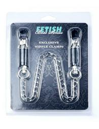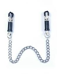 Ανθεκτικοί μεταλλικοί σφιγκτήρες καλυμμένοι με μαλακό καουτσούκ, αυτοί οι σφιγκτήρες είναι ιδανικοί τόσο για αρχάριους όσο και για λάτρεις. Η δύναμη σύσφιξης της θηλής μπορεί να ρυθμιστεί περιστρέφοντας το πάνω μέρος του σφιγκτήρα Μια κομψή αλυσίδα συνδέει και τις δύο θηλές, δίνει εκπληκτική διέγερση σε κάθε κίνηση.