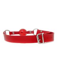 Η μπάλα είναι κατασκευασμένη από μαλακό καουτσούκ και έχει 8 τρύπες για να διευκολύνει την αναπνοή. Ο ιμάντας είναι ιδιαίτερα ρυθμιζόμενος και μπορεί να προσαρμοστεί σε οποιοδήποτε μέγεθος κεφαλής. Είναι κατασκευασμένο από κόκκινο οικολογικό δέρμα.