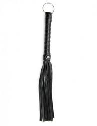 Μαύρο mini flogger με δερμάτινες κλωστές και λαβή. Κατασκευασμένο από PVC, μέταλλο χωρίς νικέλιο και ξύλο. Η λαβή έχει καλό μήκος για εξαιρετικό κράτημα και έχει επίσης ένα δαχτυλίδι στην κορυφή για αποθήκευση στον τοίχο ή προβολή. Προέρχεται από αποκλειστική συσκευασία με διαμέτρους 25x8x4 cm.