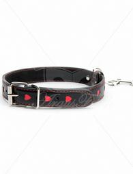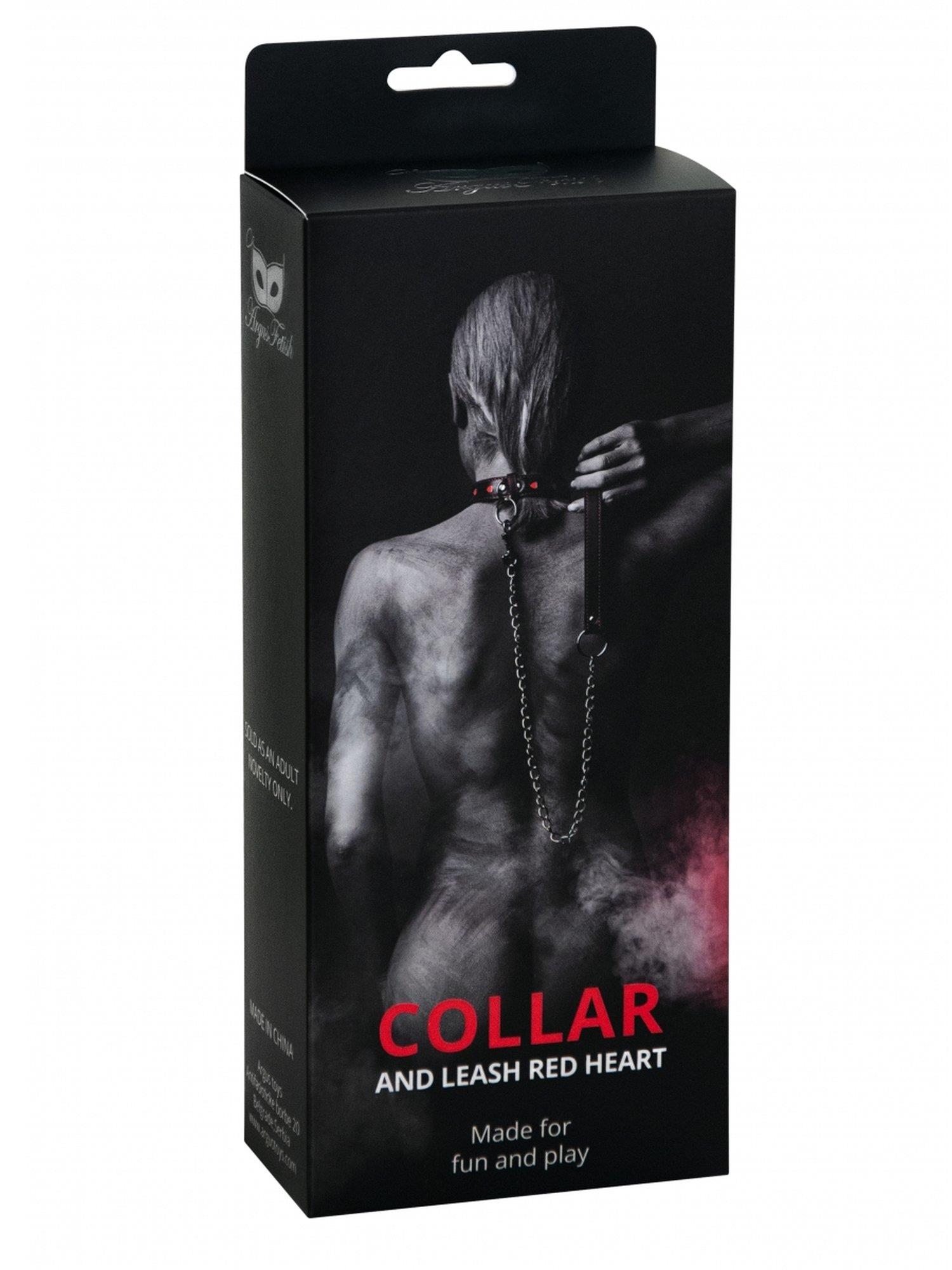 Ο πλήρως ρυθμιζόμενο μαύρο περιλαίμιο με αποσπώμενο λουρί κατασκευασμένο από συνθετικό δέρμα και μέταλλο χωρίς νικέλιο. Είναι διακοσμημένο με κόκκινες καρδιές και μπορεί να κλείσει με μεταλλική πόρπη, η οποία χρησιμοποιείται επίσης για τη ρύθμιση του πλάτους. Το μοντέλο είναι unisex ώστε και τα δύο μέρη να μπορούν να απολαμβάνουν ενώ παίζουν.