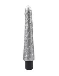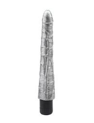 Ένας ρεαλιστικός δονητής σε ασήμι. Διαθέτει έντονο κεφάλι, με ανάγλυφες φλέβες για επιπλέον τόνωση. Ευχάριστο στην αφή, χωρίς ραφές. Ρύθμιση κραδασμών με τροχό στη βάση. Εξοπλισμένο με δόνηση μεταβλητής ταχύτητας, τροφοδοτείται από δύο μπαταρίες AA (δεν περιλαμβάνονται).