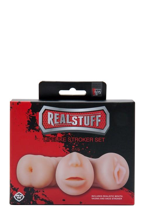 Σετ από 3 αυνανιστές με σχήματα στόματος, κόλπου και πρωκτού. Το ρεαλιστικό σετ stroker προσφέρει ρεαλιστικές αισθήσεις και αποτελεσματικό μασάζ πέους με τις σήραγγες με υφή μέσα στους αυνανιστές. Είναι κατασκευασμένα από TPR που δεν μυρίζει, είναι υγιεινά και καθαρίζονται εύκολα. Ζωντανό σετ 3 αυνανιστών Περιλαμβάνει ρεαλιστικό στόμα, κόλπο και πρωκτό, Υγιεινό και εύκολο στο καθάρισμα Δεν μυρίζει